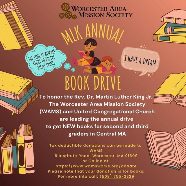 Join WAMS and the United Congregational Church in Worcester as we work to exceed 1,000 books and reach even more schools across our community.